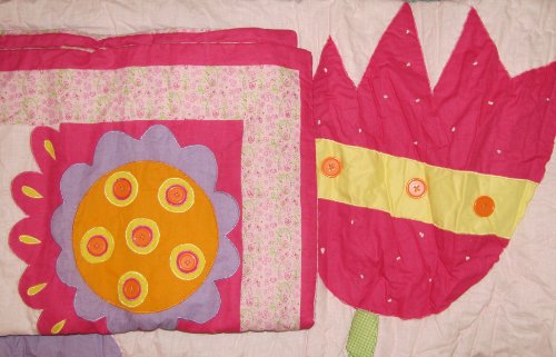 - 200 Thread count twin/full quilt comforter set that is pretty in pink with flowers, lady bugs, buttons and bows
